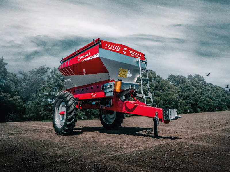 La fertilizadora de arrastre Crucianelli Fertec es la única en el mercado con cinta de 1 metro de ancho en PVC, diseñada para brindar máxima adaptabilidad y un rango de dosis superior en la aplicación de fertilizantes y materiales heterogéneos, asegurando precisión y eficiencia en cada trabajo.