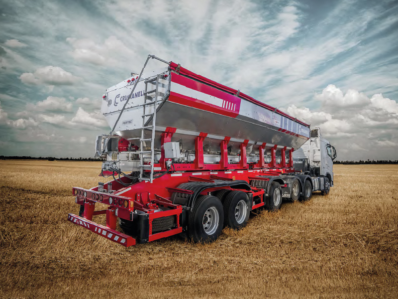 El semirremolque Crucianelli Fertec está diseñado para optimizar el transporte de semillas, fertilizantes y cereales, garantizando mayor capacidad, resistencia y versatilidad en el campo. Su tolva de acero inoxidable AISI 304 evita la corrosión y el atascamiento, asegurando una mayor durabilidad y un mantenimiento reducido.